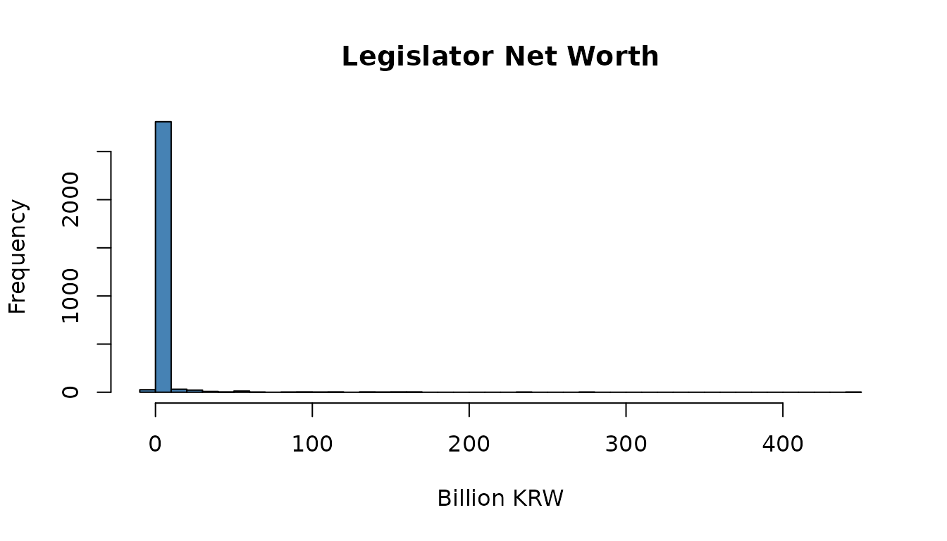 main = "Legislator Net Worth", xlab = "Billion KRW")